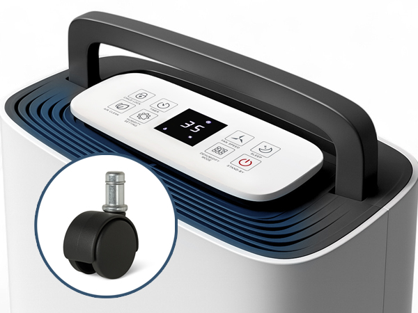Dank der 360° Leichtlaufrollen und des praktischen, einklappbaren Tragegriffs lässt sich der Luftentfeuchter kinderleicht bewegen.
