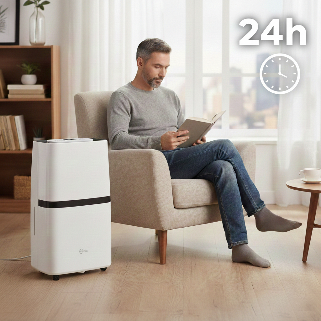 Regelbar 30-80% r.F. • Ideal bis 40 m² • Flüsterleise